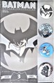 Vier Batman buttons op kaart met tekeningen van diverse Batman tekenaars/auteurs.