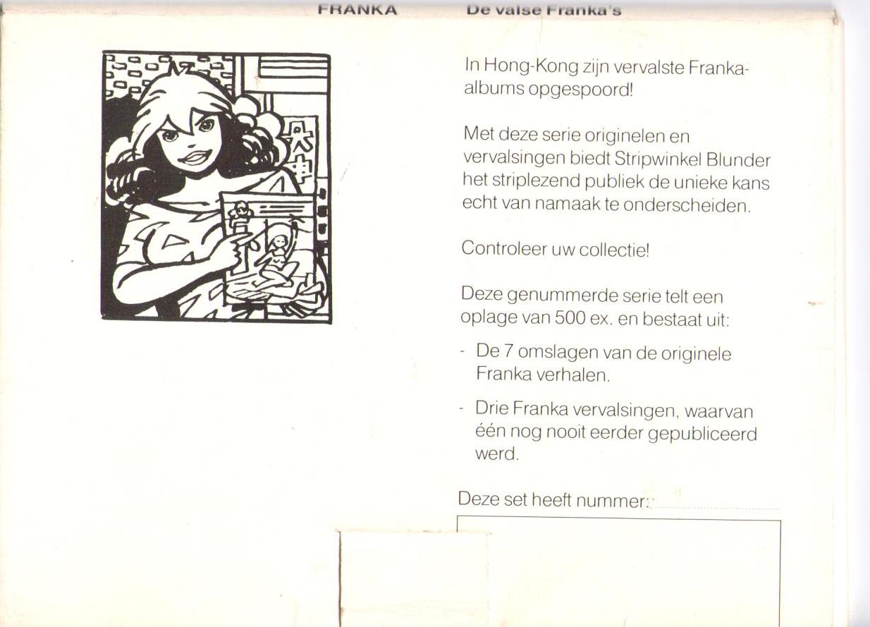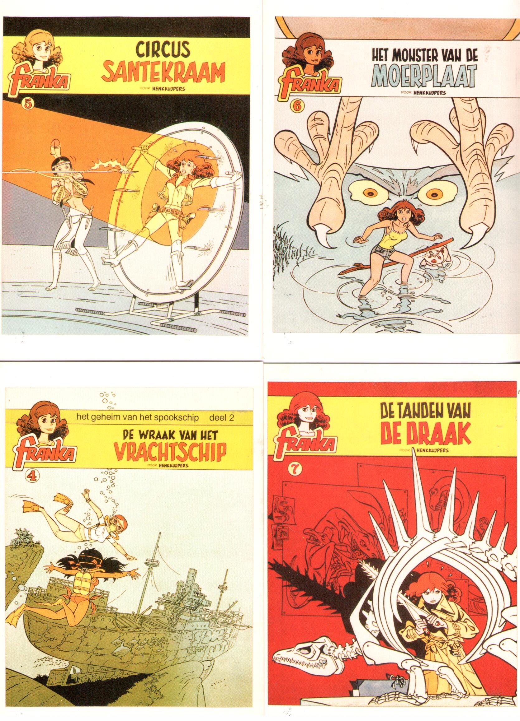 De 7 tot 1983 uitgebrachte omslagen van de originele Franka verhalen.
