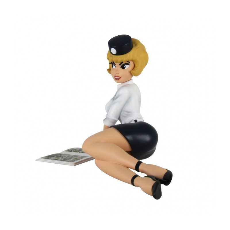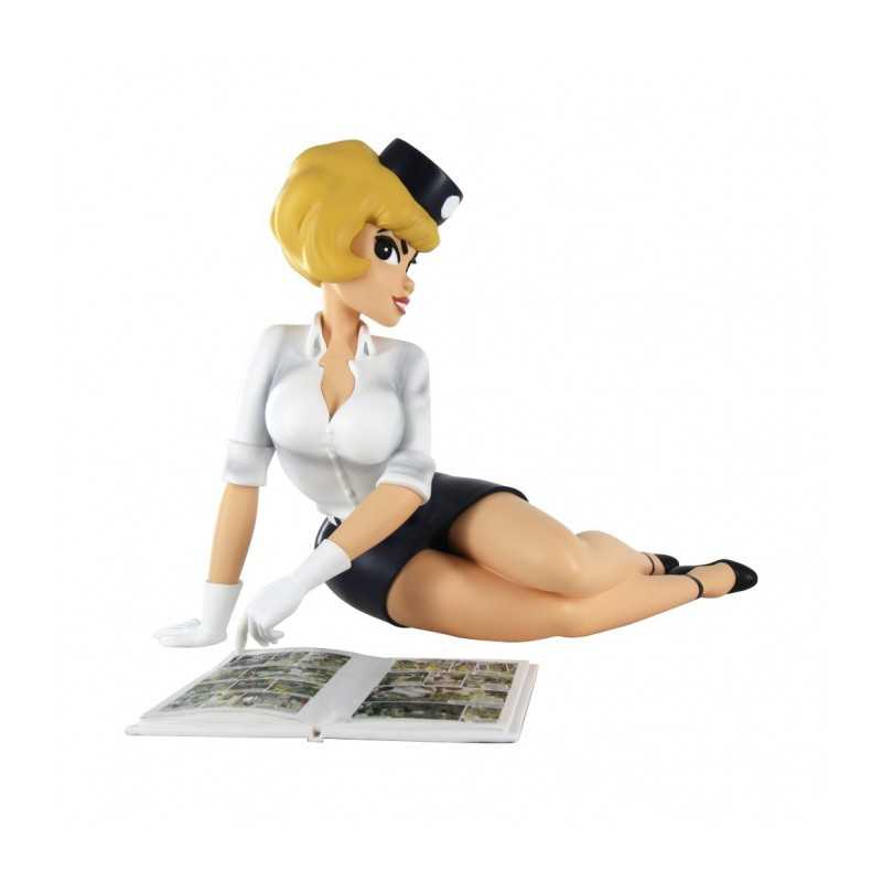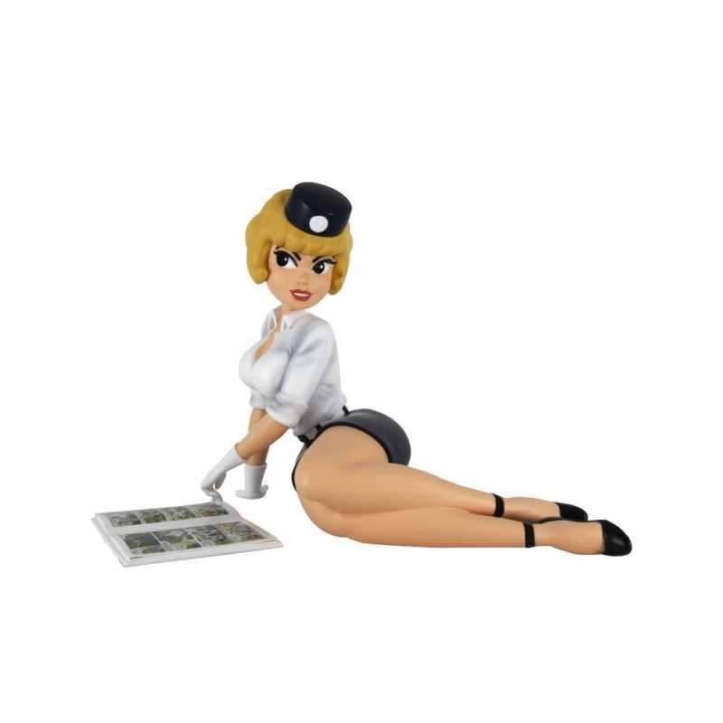 Natacha ligt op de grond en leest een stripboek, van de fabrikant Plastoy.