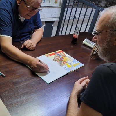 Na afloop heeft hij nog een leuke tekening gemaakt op onze tekenaarsdoek.
