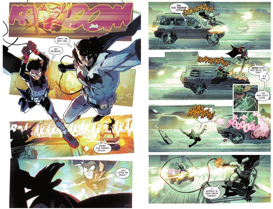 Plus, Shush continues her quiet reign of terror and horror as both Batman and Robin chase after her. But when a familiar face from Damian’s past returns, will he be able to keep his mind on the mission? All this while Damian struggles to keep his public persona as a high school student up — a big ask for a boy who was raised by the League of Assassins! And what’s this about a possible getaway to Dinosaur Island?!