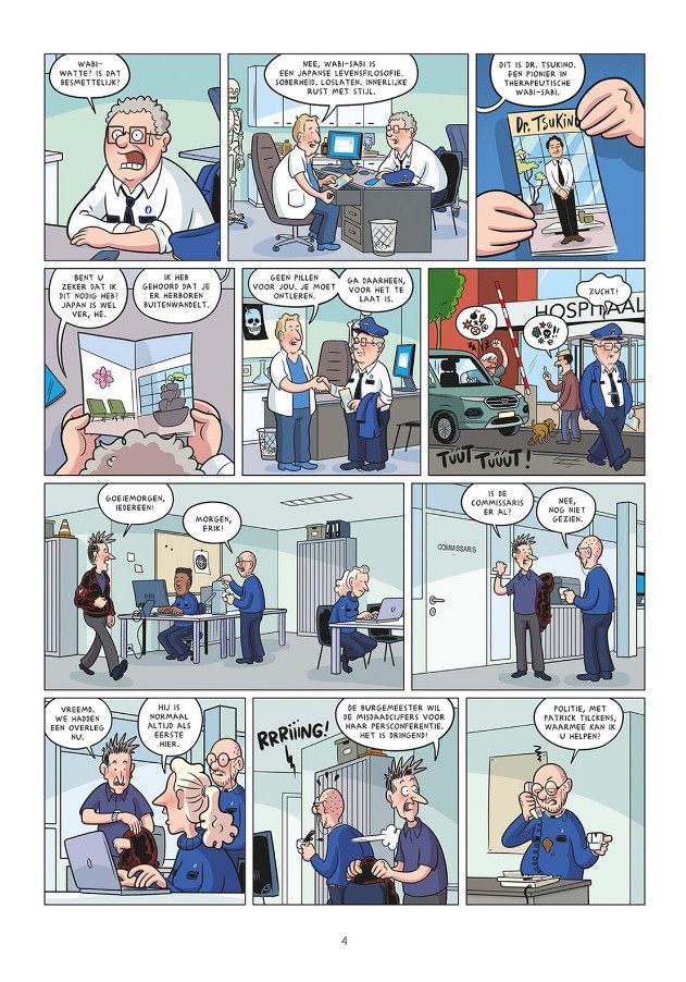Na negenentwintig avonturen is de commissaris op. De dokter schrijft geen pillen voor, maar een zen-retraite in Japan. Hij laat een chaotisch politiekantoor achter, waar Patrick en Floor strijden om het gezag en Indy en Vince een feestje bouwen.