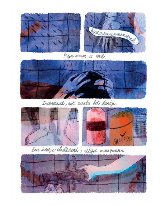 Wanneer ze een oude klasgenoot tegenkomt, verandert alles. Ze kan niet blind blijven voor wat er gebeurd is. Dit zet haar wereld op zijn kop. Mol is een verhaal over de gevolgen van pestgedrag. Fictie die voortkomt uit het echte leven.