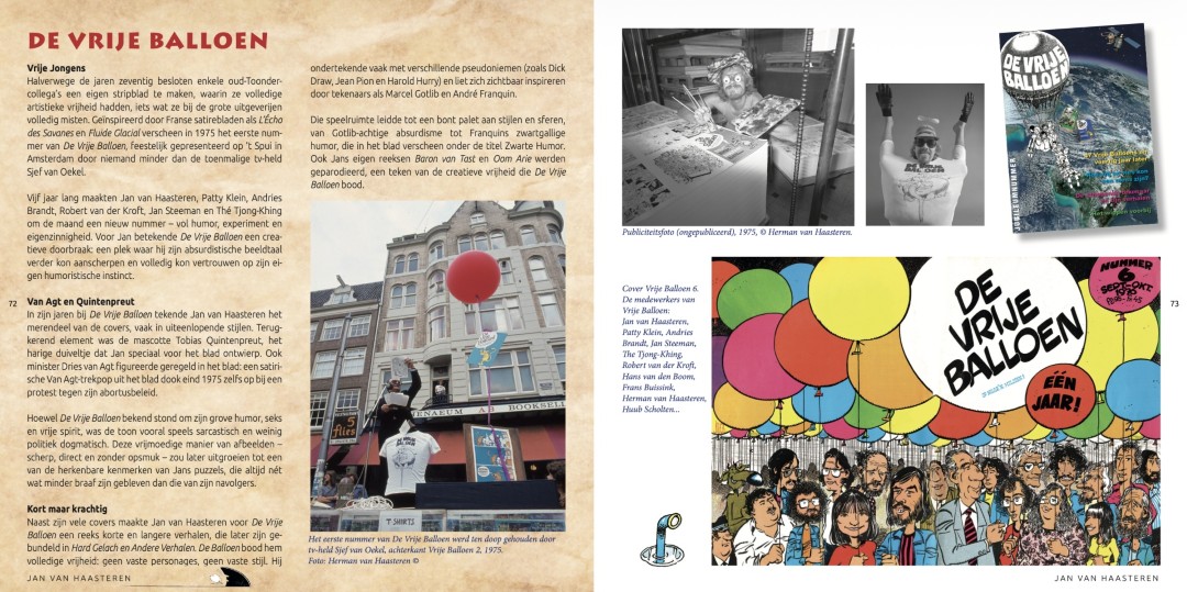 De luxe hardcover uitgave, genaaid gebonden – formaat 210 x 210 mm, bevat 168 pagina’s in kleur met veel beeldmateriaal van werken van de ontwikkeling van de veelzijdige striptekenaar Jan van Haasteren. De tentoonstelling