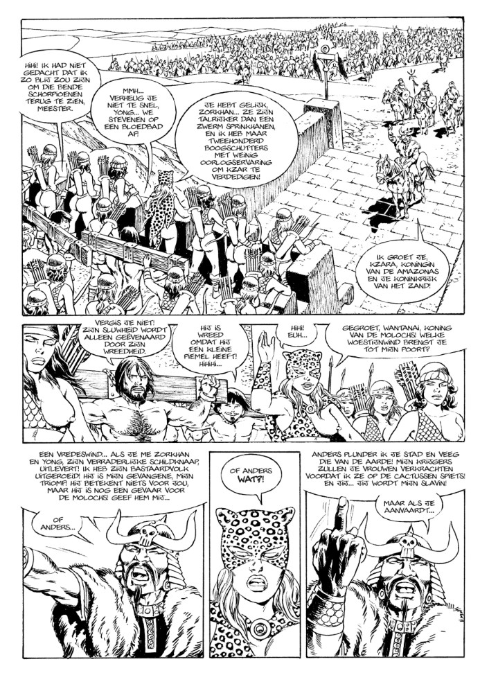 De woestijn van Kzar en zijn versterkte stad wordt bewoond door de Amazonas, een volledig vrouwelijk volk dat wordt geregeerd door Kzara. Hier zijn mannen voor eeuwig en altijd verboden.