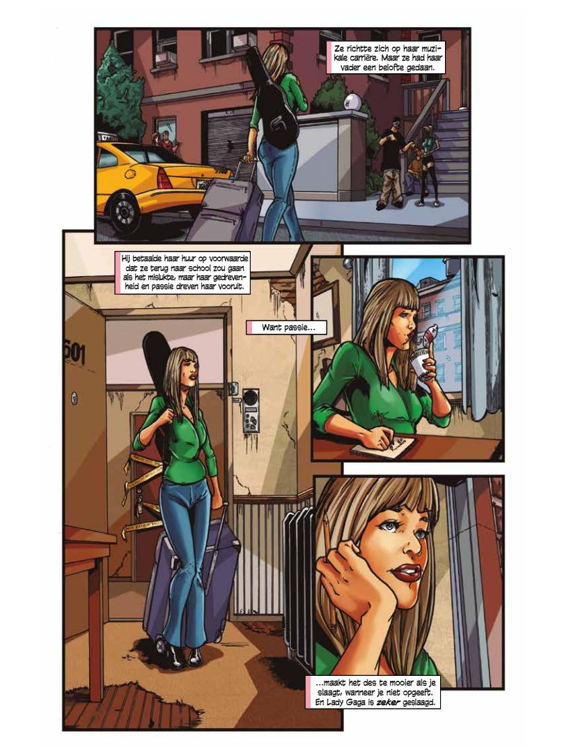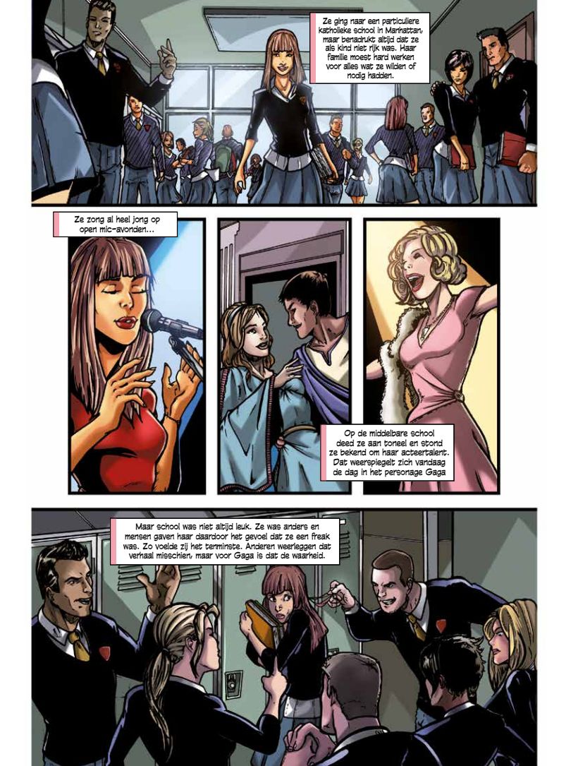 Lady Gaga, een leven groter dan het podium! Ze brak door met Just Dance, groeide uit tot mode-icoon, shockpopster en cultureel fenomeen, maar ze bleef altijd haar eigen pad volgen. In deze biografische strip duik je in het buitengewone verhaal van Lady Gaga, van haar vroege jaren in New York tot haar wereldwijde supersterrendom.