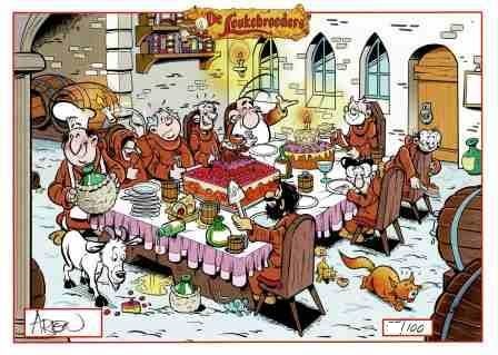 In 1976 bedachten Peer Coolen en Uco Egmond voor het stripblad Eppo de komische reeks De Leukebroeders, over kloostermonniken die het goedverkopende Grappistenbier brouwen. Oberon publiceerde in 1980 en 1981 twee albums. In 1994 volgde een uitgave van Big Balloon in de collectie De Blauwe Stripreeks en in 2002-2004 gaf Klein Book Services Erica in de collectie Strip Reeks nog eens drie albums uit, waarvan de eerste twee heruitgaven zijn van de Oberon-albums.