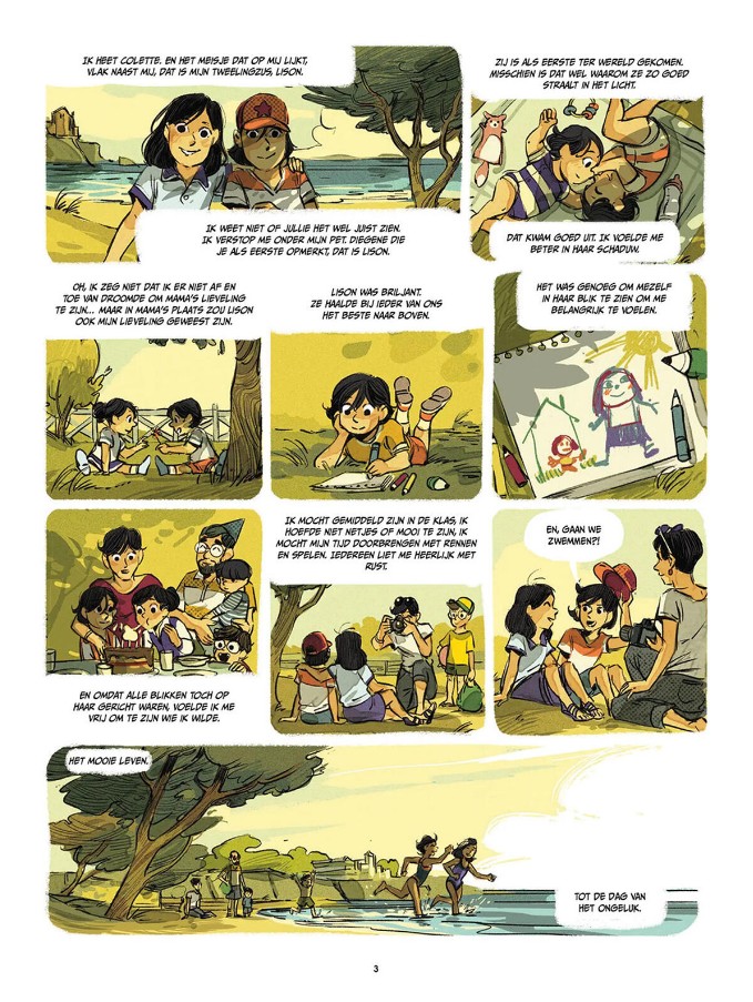 Colette is elf en heeft altijd in de schaduw van haar tweelingzus Lison geleefd: de mooiste, de meest talentvolle, de ster van de klassieke dans. Tot het noodlot toeslaat. Lison sterft bij een auto-ongeval. Hun moeder overleeft, maar verliest een arm én lijkt tegelijk haar 'lievelingskind' kwijt te zijn. Sindsdien staat Colettes leven stil: ze voelt zich klein, wordt op school bekeken als 'dat fragiele meisje' en probeert — vooral voor haar moeder — het dansen voort te zetten waarin Lison uitblonk. Alleen: Colettes verdriet krijgt letterlijk een stem, want haar schaduw praat tegen haar en jaagt haar voortdurend op.