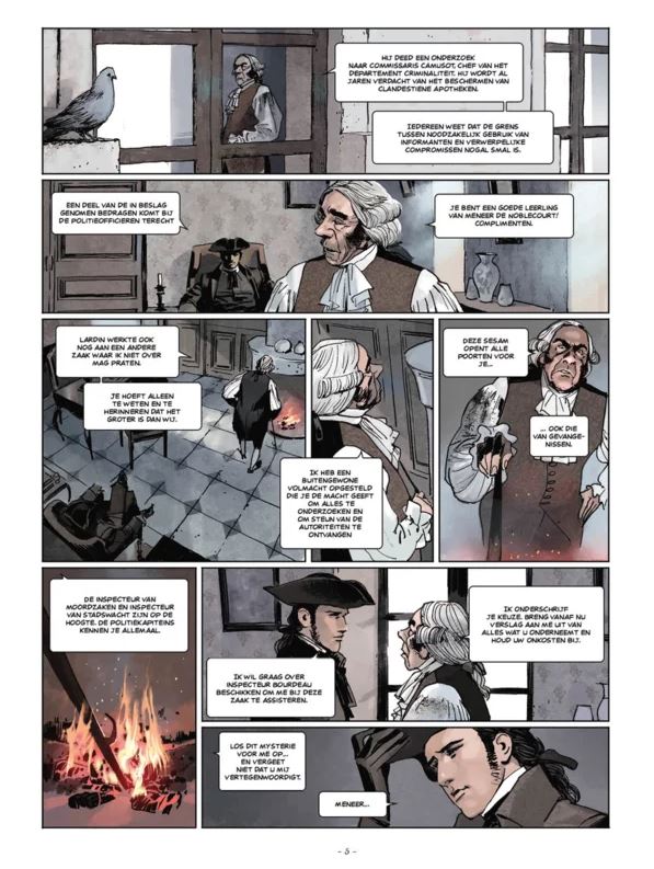 Meneer de Sartine, rechercheur bij de politie, vertrouwt Nicolas Le Floch het onderzoek naar een verdwenen commissaris toe. Deze laatste deed een onderzoek naar de praktijken van één van zijn collega's, verdacht van het beschermen van illegale apotheken. De jongeman stort zich recht in het verdorven hart van de hoofdstad en hij ontdekt een nog veel gevaarlijker zaak dan hij had verwacht, zijn meerdere heeft hem niet alles van tevoren verteld.