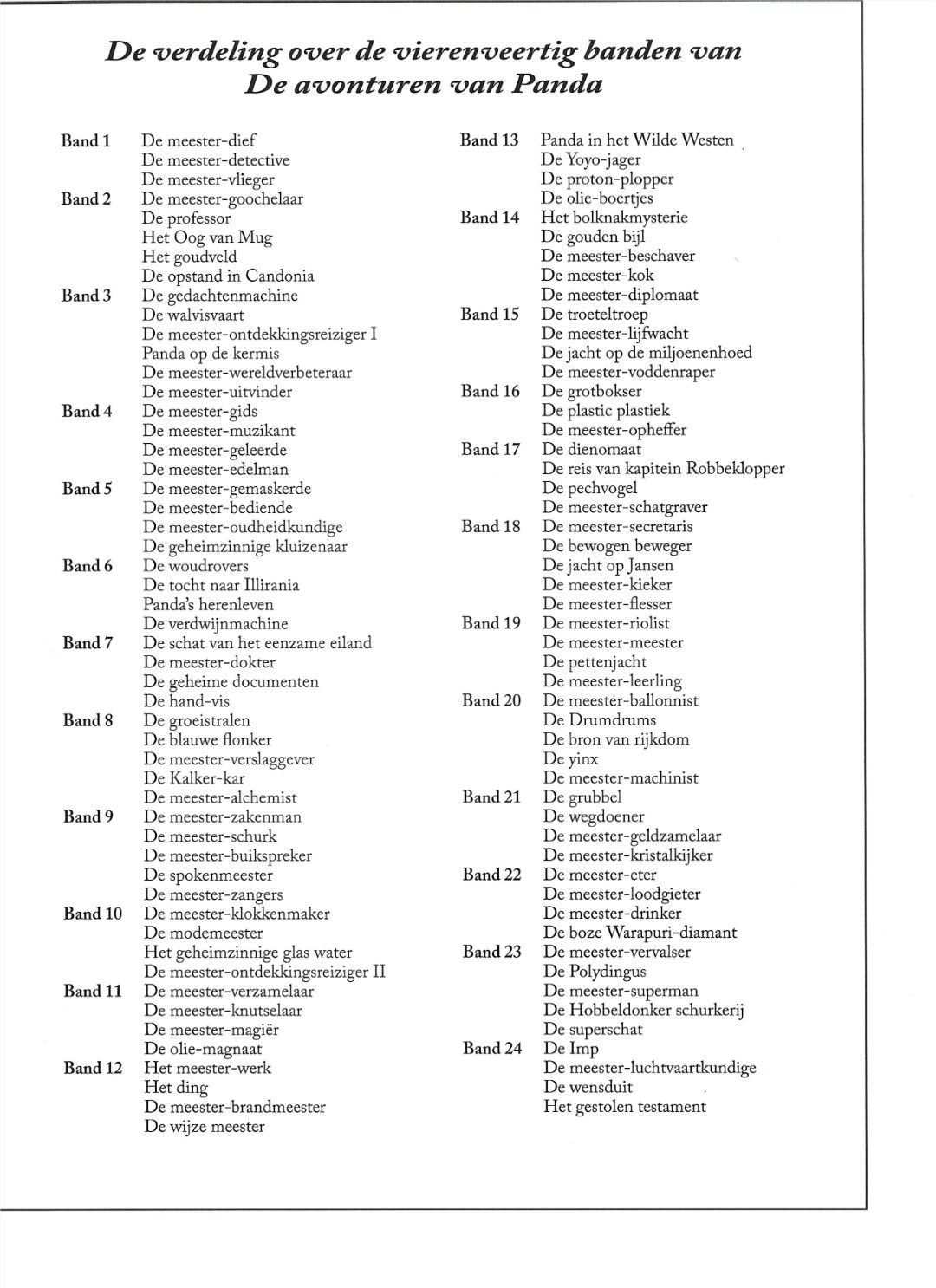 | • | 24. | De avonturen van Panda |