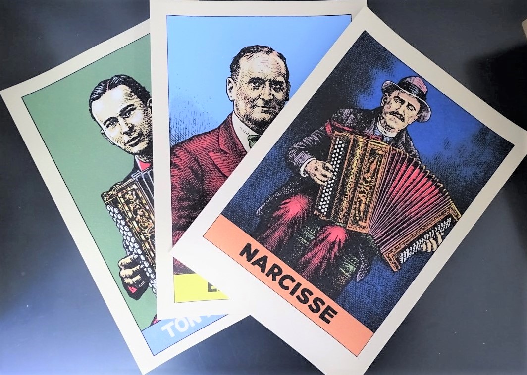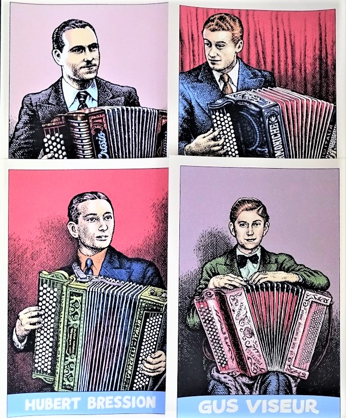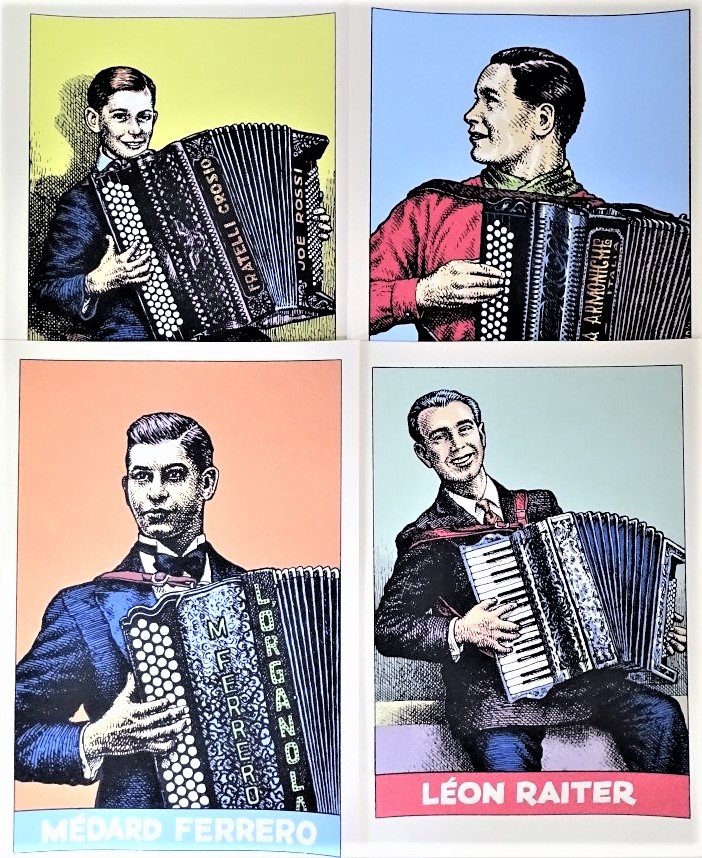 12 zeefdrukken van accordeonisten op luxe papier