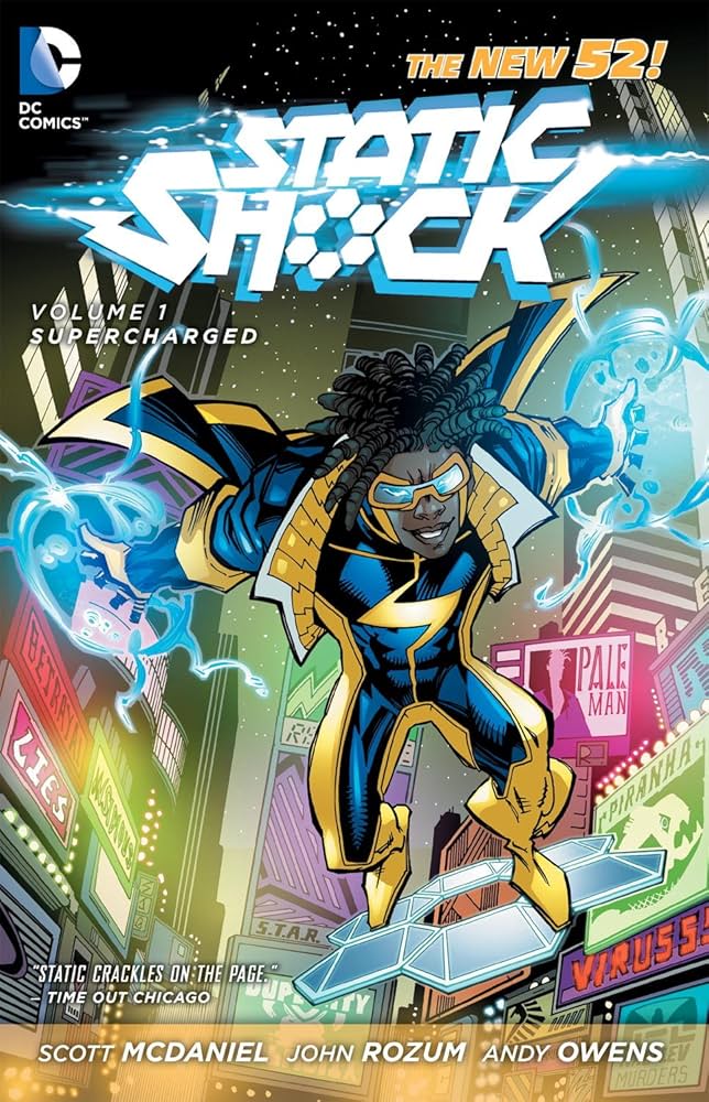 As a part of the acclaimed DC Comics—The New 52 event of September 2011, Scott McDaniel and John Rozum bring Static Shock back to the DC Universe! The brilliant, yet slightly awkward high school student Virgil Hawkins transforms into the cocky electromagnetic hero Static! A mysterious tragedy forces the Hawkins family to relocate from Dakota to New York City and Virgil must start all over again in a new high school, as well as a new internship at S.T.A.R. Labs. But is he ready to take on the new villains who lurk in New York City's underworld?