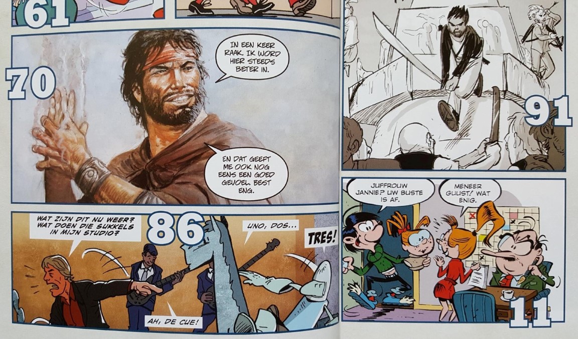 Verder: een compleet Donald Duck Jubileumstrip van 15 pagina’s, hommages Guust Flater (primeur!), de gouden eieren van Willy Vandersteen (Red Knight, etc.), en unieke bijdragen van stripmakers Matthieu Bonhomme, Ralph Brendt, Vick Debergh, Marissa Delbressine, Kim DuChateau, Evert Geradts, Henrieke Goorhuis, Ronald Grossey, Frans Hasselaar, Eric Heuvel, Mau Heymans, Pieter Hogenbirk, Frits Jonker, Apriyadi Kusbiantoro, Caroline van der Lee, Annemarie Lodewijk, Luc Morjaeu, Marvano, Hans van Oudenaarden, Jacques Post, Willem Ritstier, Herman Roozen, Shirow Di Rosso, Kenny Rubenis, Hugo Seriese, Meinte Strikwerda en Peter de Wit.